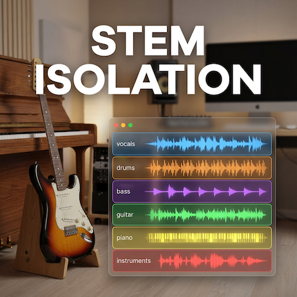 On-device AI stem isolation to separate vocals, drums, bass, guitar, piano, and instruments with pro clarity